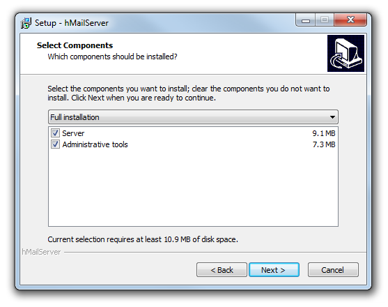 During the installation, an admin account will be created. The admin will be in charge of managing hMailServer configuration later. Thus, we will need to enter a password for the admin account.