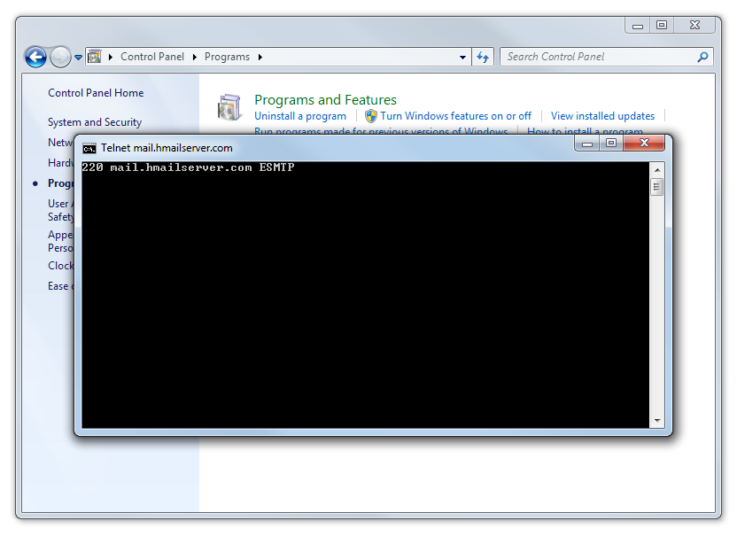 Some Internet Service Providers (ISPs) block outgoing traffic on port 25, which will be used for email. Thus, to test if the port 25 is blocked or not, we just need to telnet mail.hmailserver.com 25 on command line. If it is not blocked, a message “220 mail.hmailserver.com ESMTP” will be shown.