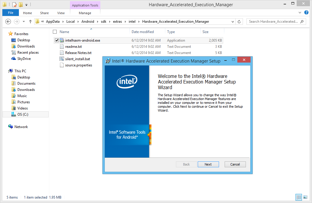 After the installation is done, there is also a need to run the installer located in the Hardware_Accelerated_Execution_Manager folder. Once it is installed on the computer, the Android Wear emulator should be able to be launched!