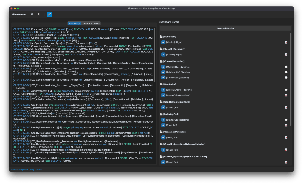 If you are an Orchard Core developer, try SilverVector today. Paste in your DDL, generate the dashboard, and see your Orchard Core CMS in a whole new light.