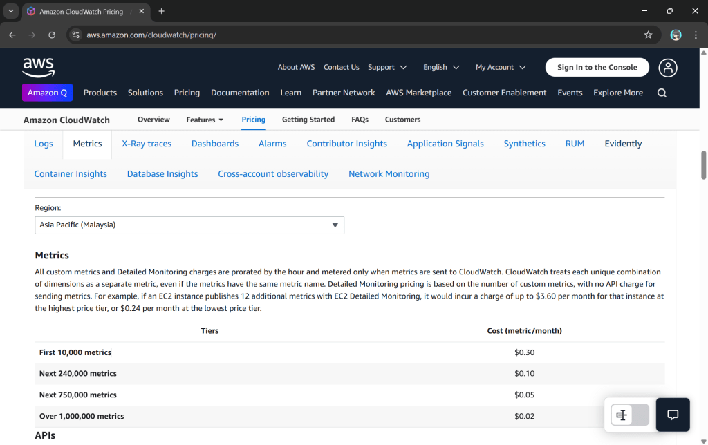 public void TrackMetric(string metricName, double value, string endpointPath) { _pendingMetrics.Add(new MetricDatum { MetricName = metricName, Value = value, Unit = StandardUnit.Count, Dimensions = new List<Dimension> { new Dimension { Name = "Endpoint", Value = endpointPath } } }); }