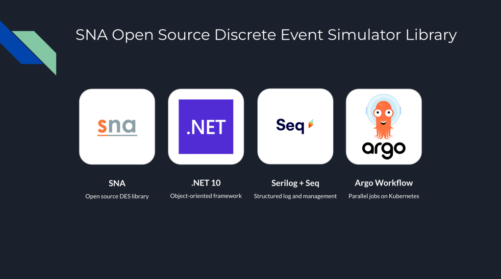We use System.CommandLine to create a strict contract between the container and the orchestrator. We expose key variables of the simulation as CLI arguments, for example, arrival rates, resource counts, service times.