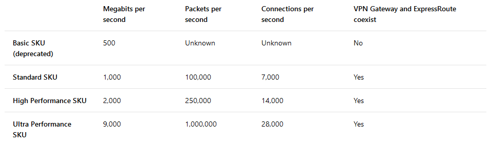 For the Gateway SKU, we are given three options: Standard, High Performance, Ultra Performance. As a start, we choose the Standard SKU which costs the least among three.