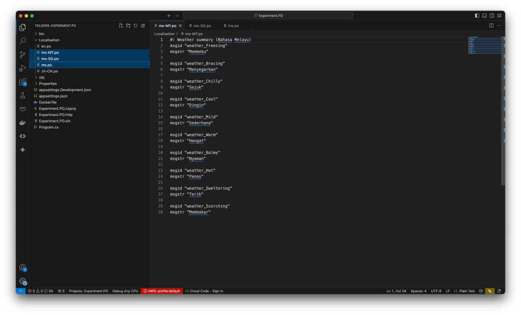 One last thing I would like to share is that, as shown in the screenshot above, since we do not have a PO file for ms-BN (Malay for Brunei), the fallback mechanism automatically uses the ms.po file instead.