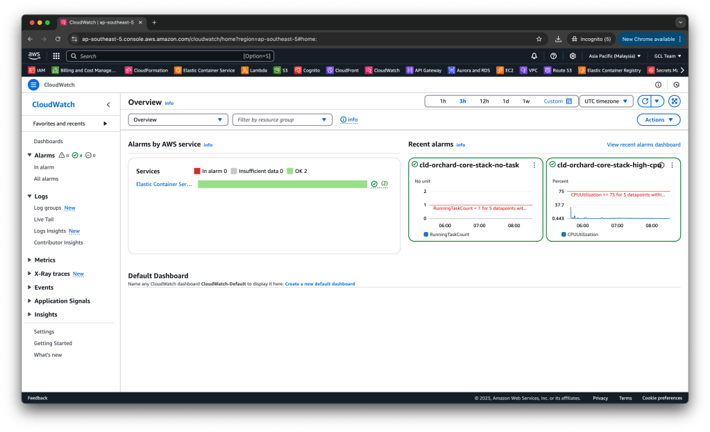 To ensure we effectively monitor the performance of Orchard Core on our ECS service, we also need to set up CloudWatch alarms to track metrics like CPU utilisation, memory utilisation, health check, running task count, etc.