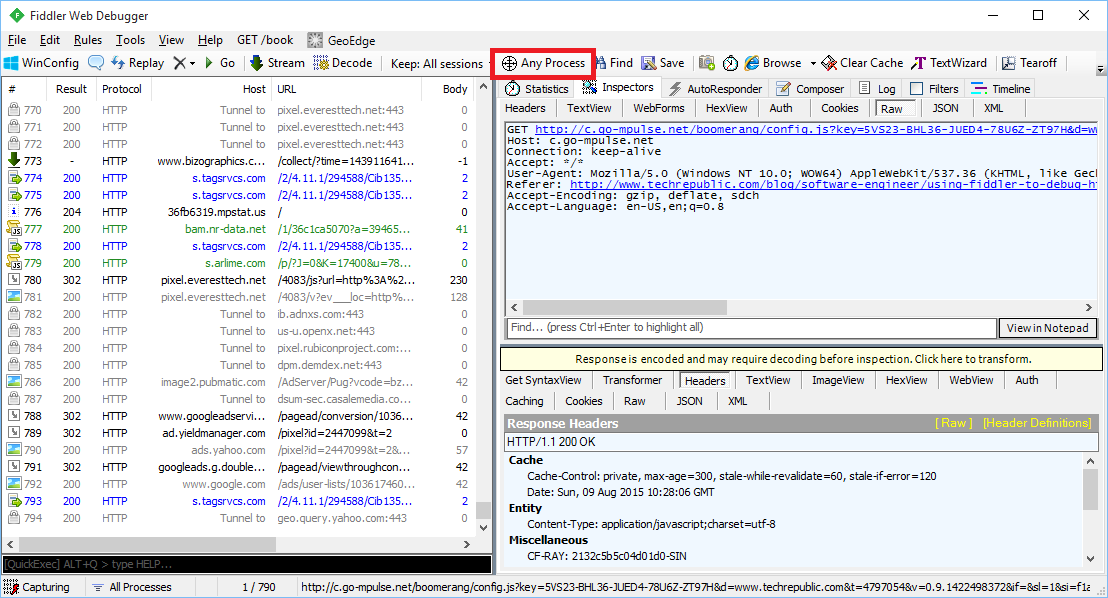 Fortunately, Fiddler providing a filtering function “Process Filter” to enable us to capture traffic coming from a particular browser, instead of all browsers.