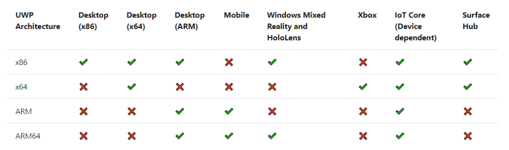 Windows 10 devices and architectures. (Image Source: MSIX Docs)