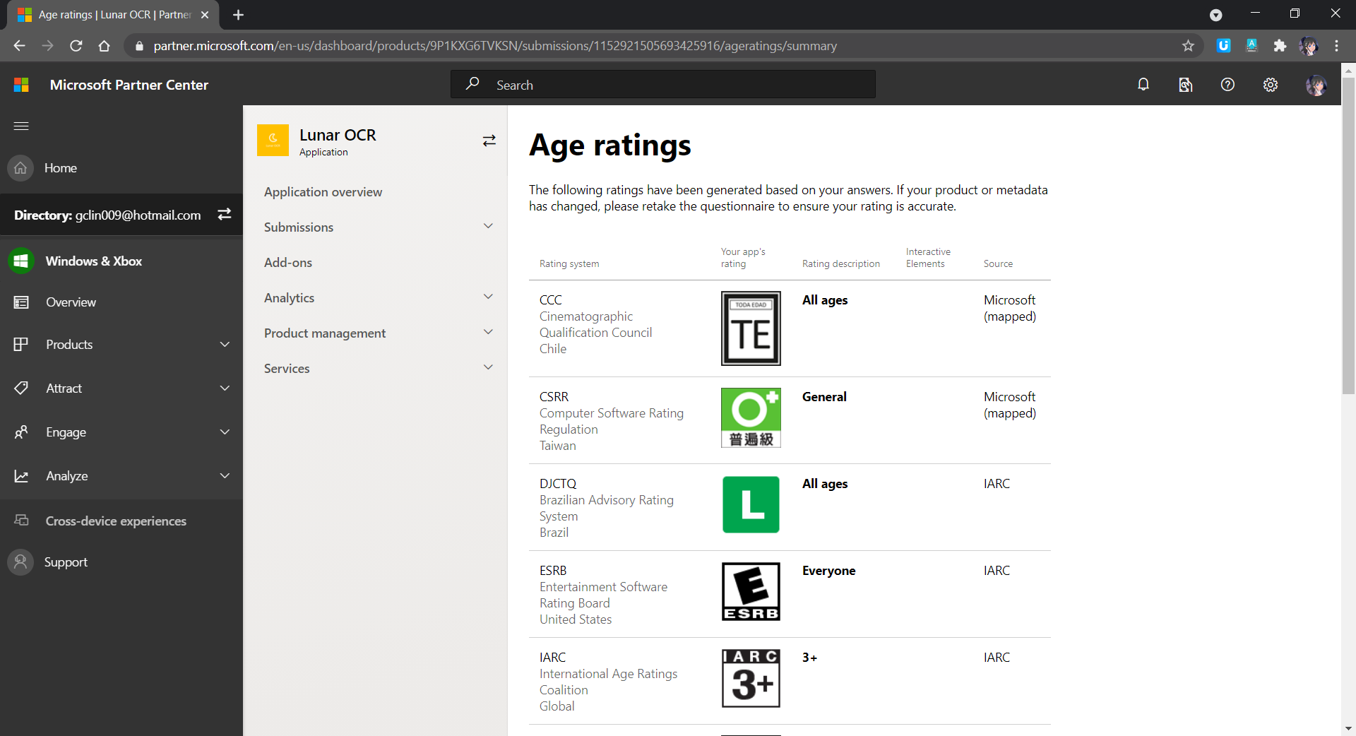 Age Rating: There will be a tool to help us determine the rating of our app in each of the markets.