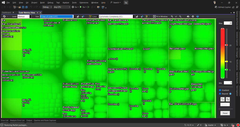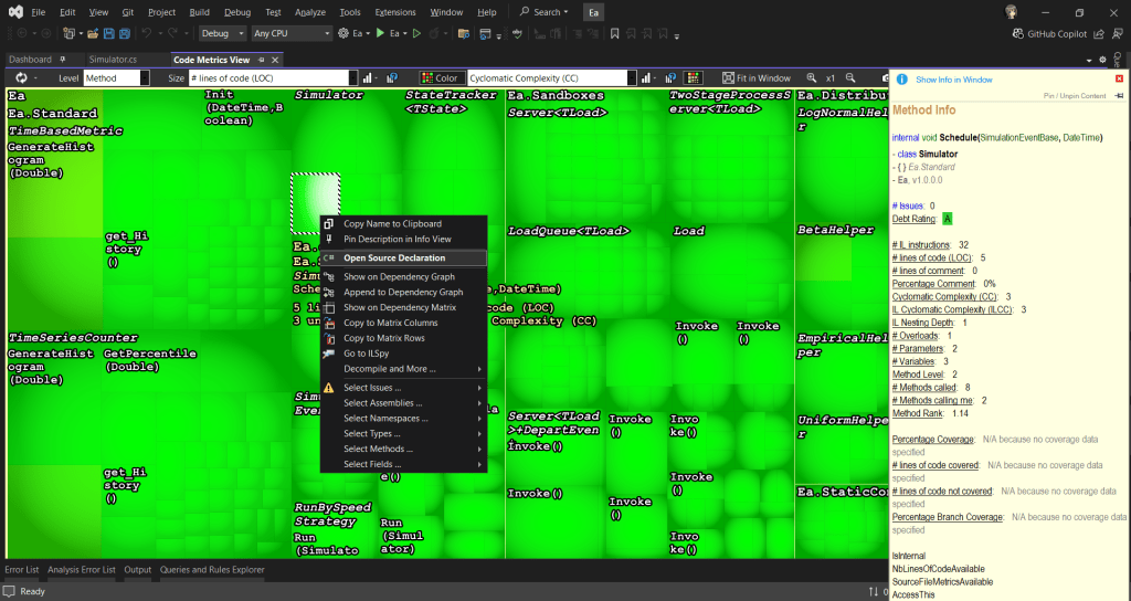 One of the standout features of NDepend is its comprehensive dashboard, which I heavily rely on to get an overview of the entire O2DES.NET codebase.